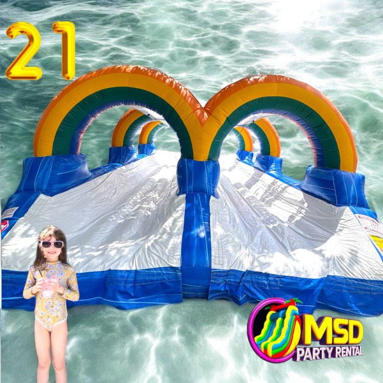 Experience double the thrill with the Dual Slip snd Slide XL. This extra-large inflatable offers two sliding lanes, letting multiple guests race or slide at the same time. Perfect for outdoor parties or events, it's designed for safe, energetic fun that adds a refreshing twist to any gathering.